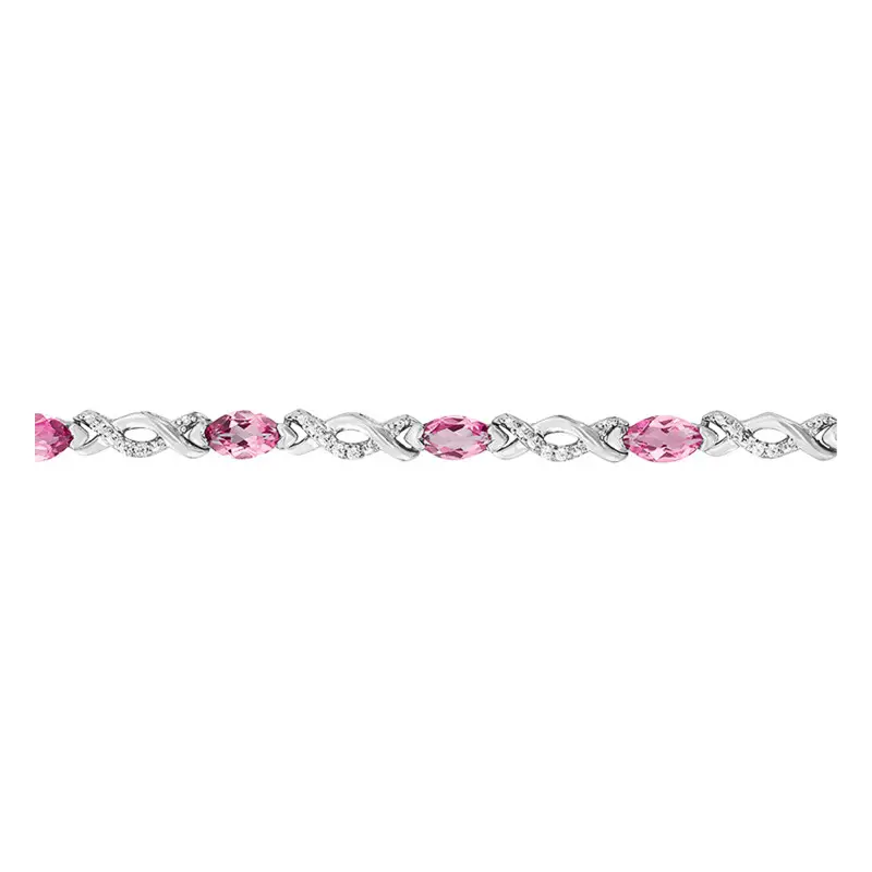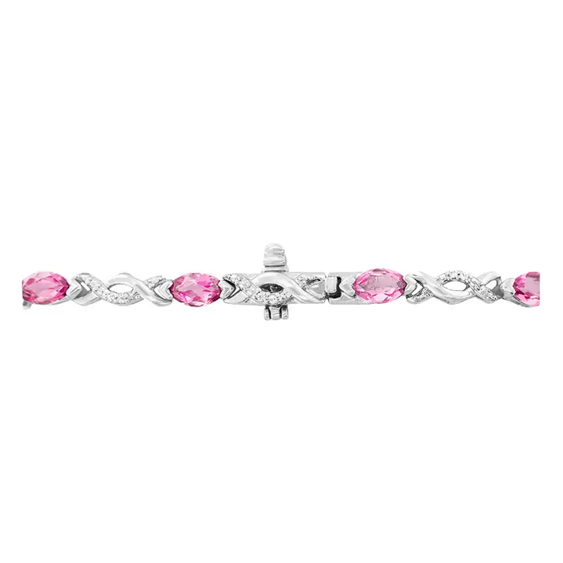 Succombez au bracelet que vous propose la marque Aurora. Ce bracelet en or blanc 750/1000 (18K) est orné de 28 diamants ayant un poids de 0.07 carat ainsi que de 14 tourmalines roses de 3.65 carats. La tourmaline rose symbolise l’amour de soi mais également la confiance en soi. Ce bracelet a une largeur ainsi qu’une hauteur de 3 mm. La longueur de ce dernier est de 19 cm. Le poids d’or moyen de ce bracelet est de 8.25 grammes.