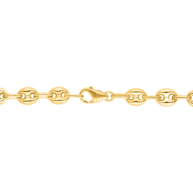 Bracelet en or jaune 750/1000 (18K) maille creuse grain de café d’une longueur de 19 cm avec un fermoir mousqueton.