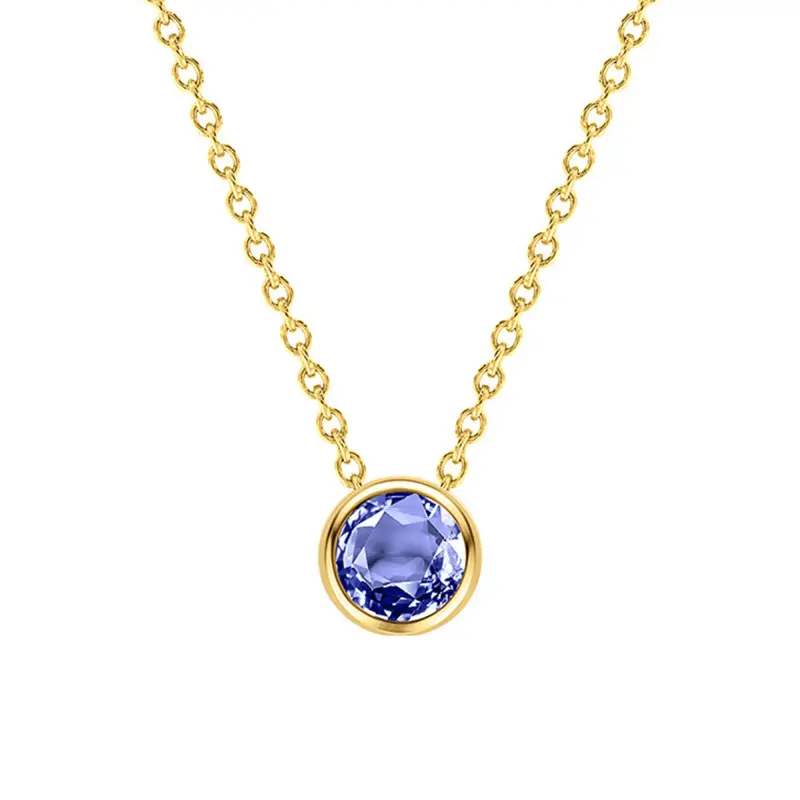 Monbijou a imaginé ce collier en étroite collaboration avec son atelier de création. Ce bijou est confectionné en or jaune 18K. La chaîne à mailles forçat est disponible en quatre longueurs : 38, 40, 42 et 45 cm. Elle s’attache grâce à un anneau à ressort, prévu à cet effet. Une délicate tanzanite bleue, taillée en forme ronde et montée en serti clos, vient sublimer le collier. Cette pierre pèse 0,50 carat et mesure 5 mm de diamètre. Le mariage de la couleur dorée de la chaîne et du bleu profond de la pierre attirera tous les regards.