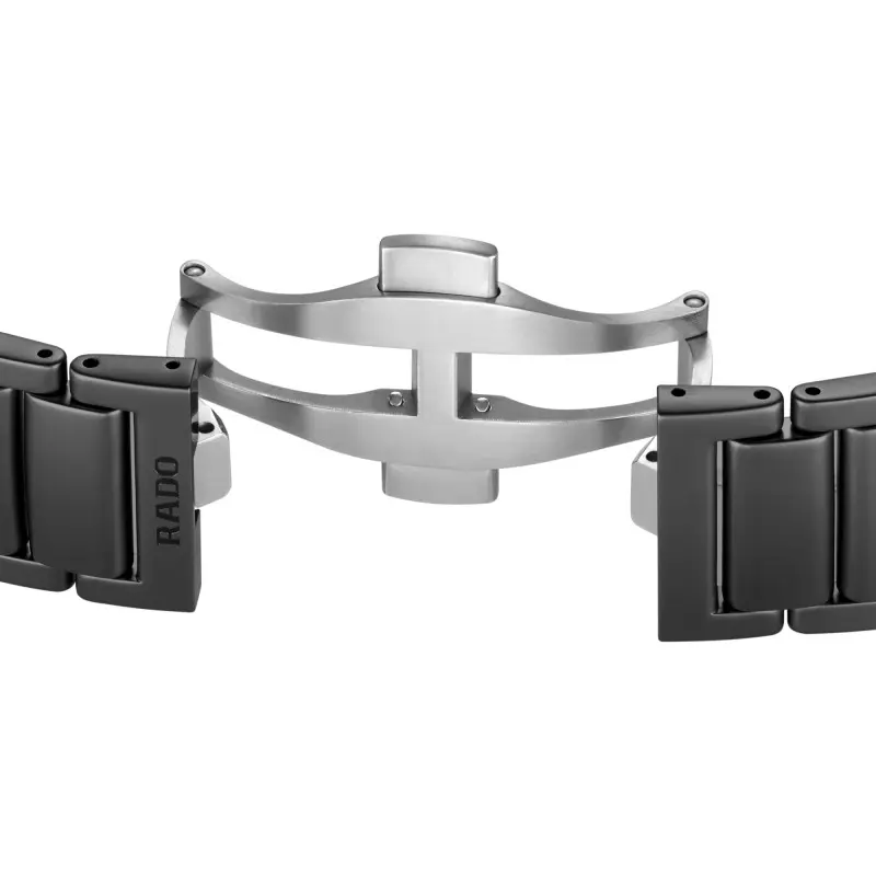 Le bracelet de la montre est une pièce maîtresse en soi, fabriqué dans la même céramique noire que le boîtier, offrant ainsi une continuité visuelle remarquable et une sensation unique au poignet. Ce matériau noble est apprécié pour sa durabilité, sa résistance à l’usure et sa douceur au toucher. La boucle déployante de type papillon en noir assure non seulement un ajustement sécurisé, mais ajoute également une note d’élégance. Sa fermeture discrète et harmonieuse est conforme à la sophistication moderne de l’ensemble. Avec une entrecorne sur mesure, chaque composant est pensé pour fusionner dans une fluidité de style et de confort.