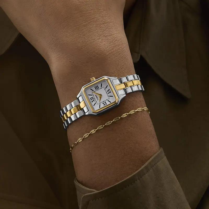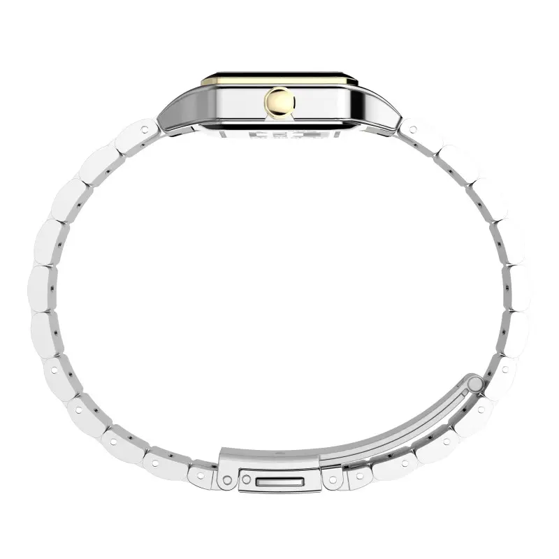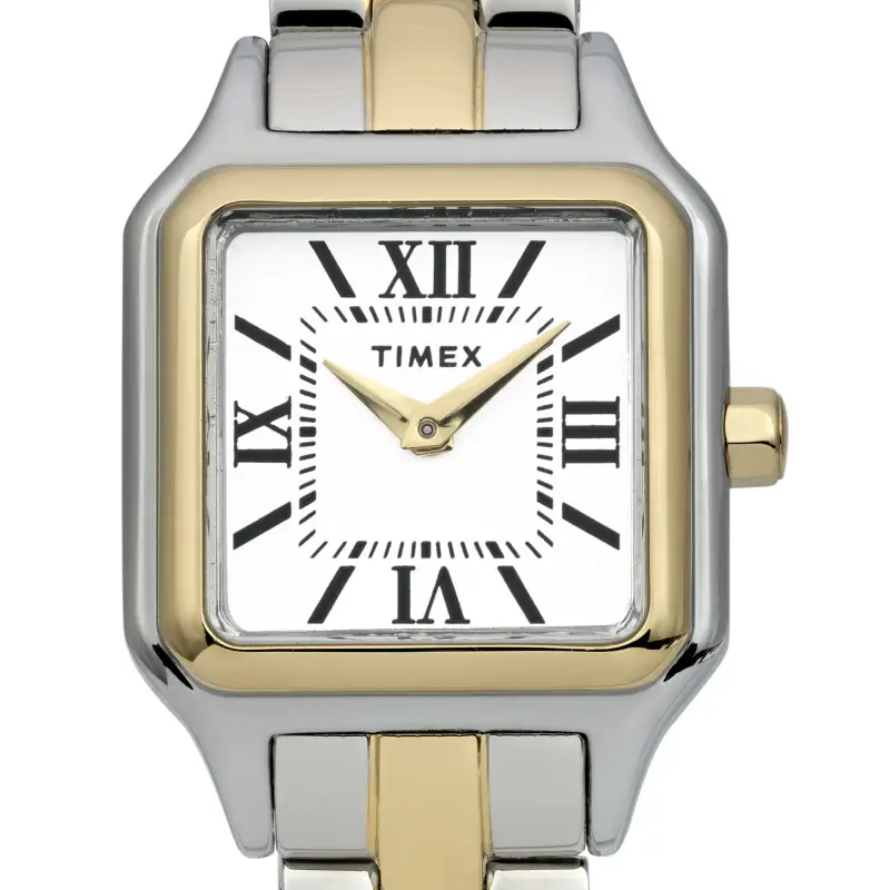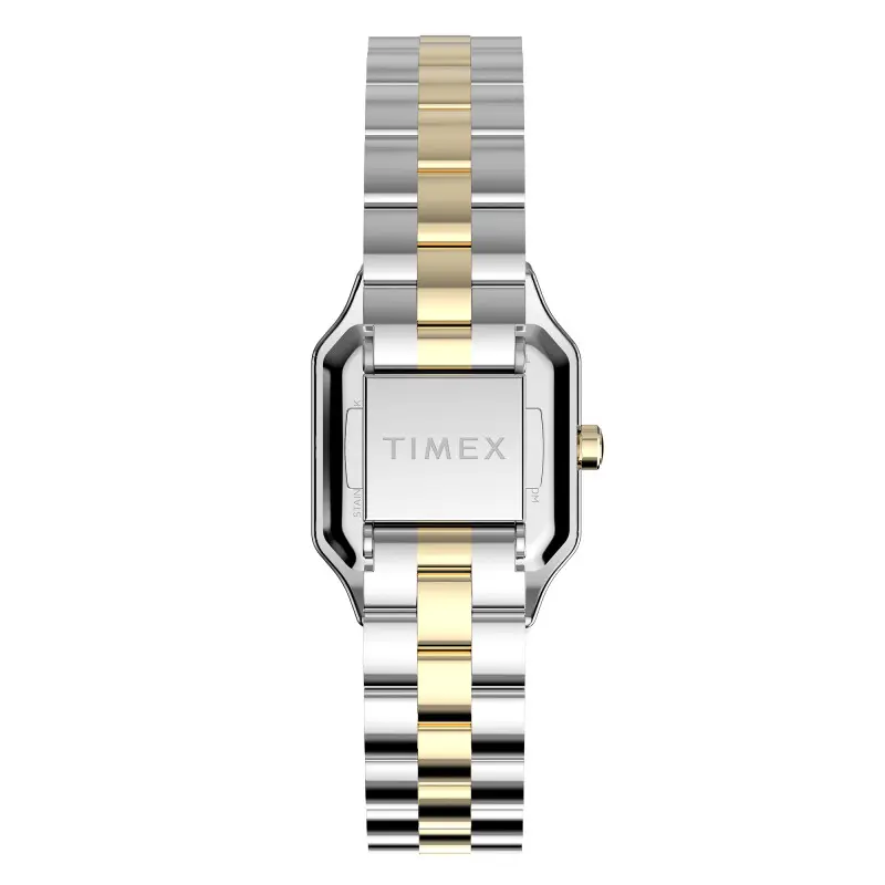 La montre Timex Legacy Addison arbore un design à la fois classique et sophistiqué qui attire immédiatement l’attention. Le boîtier carré en acier inoxydable se distingue par ses dimensions compactes de 23mm par 23mm, ce qui en fait un choix idéal pour les poignets délicats. Avec une épaisseur de seulement 8mm, elle offre une présence discrète mais affirmée. La finition polie et le traitement PVD jaune ajoutent une dimension de luxe et d’élégance, tandis que le poids de 56g assure une sensation de solidité sans être encombrante. Le fond de boîte emboîté, associé à un verre minéral résistant, assure durabilité et esthétique raffinée.